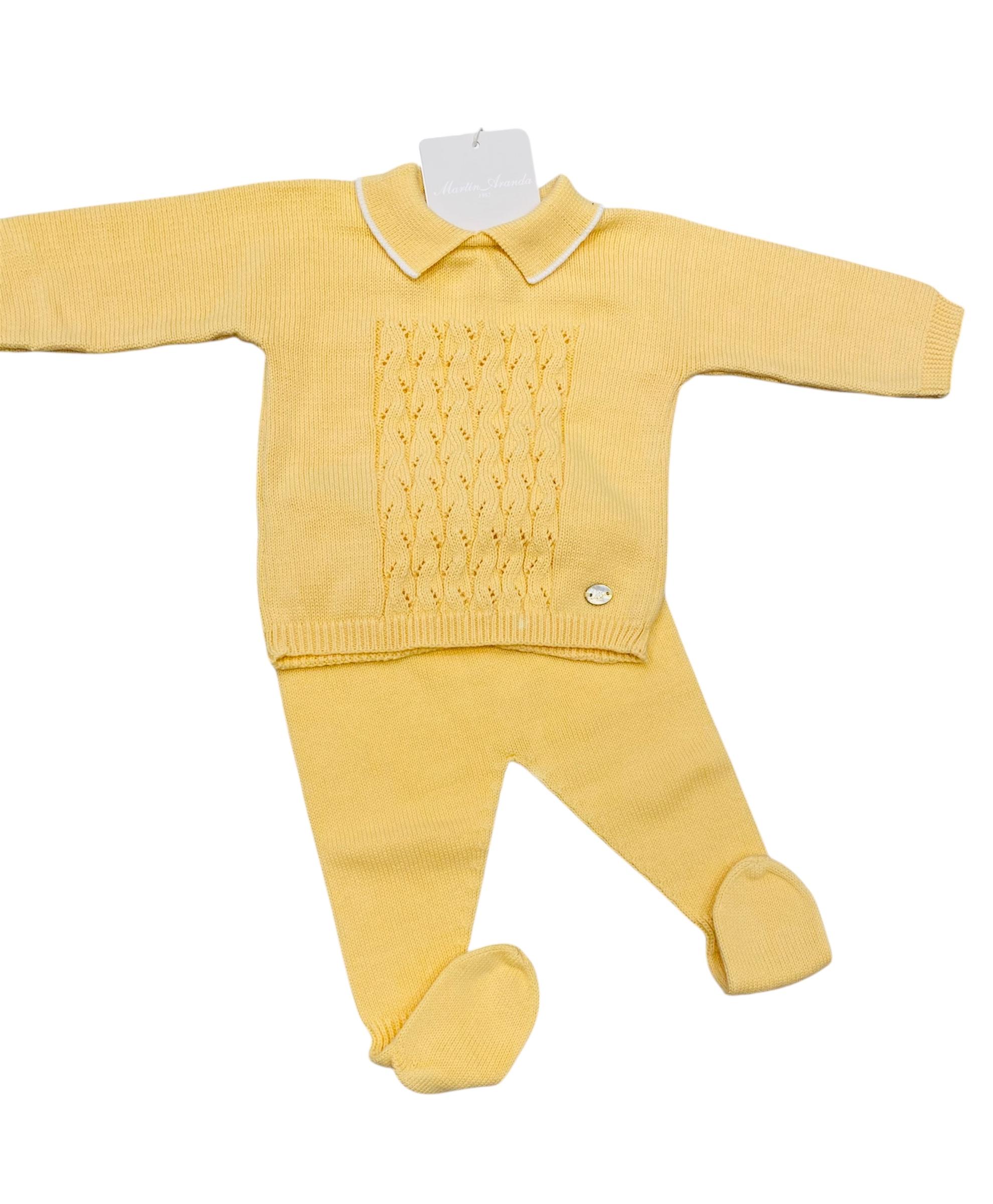 Completino neonato in filo di puro cotone, corpetto con piccole lavorazione a trecce e ghettina con piedino attaccato.