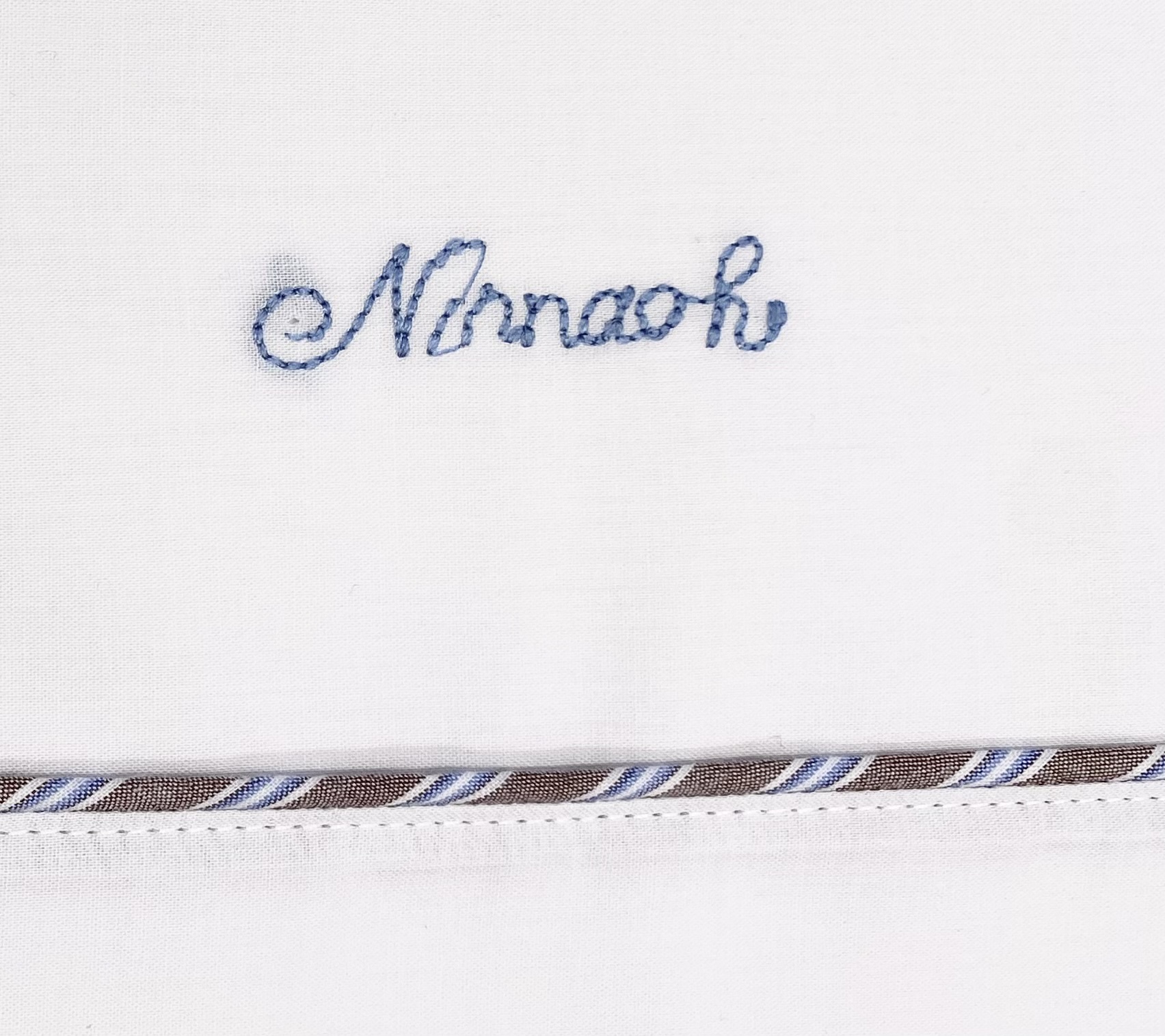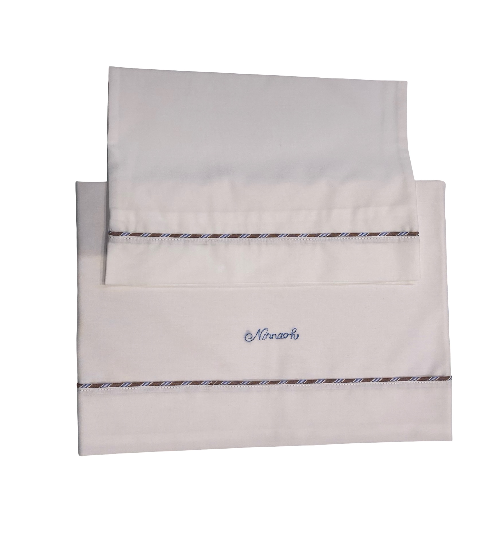 Lenzuolino per culla o carrozzino tinta unita bianco, con profilo rigato, comprende anche la federa ed il copri-materassino.